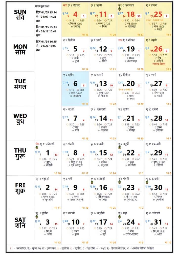 | 26 Mon | दुर्गाष्टमी व्रत , भीष्माष्टमी , गणतंत्र दिवस |